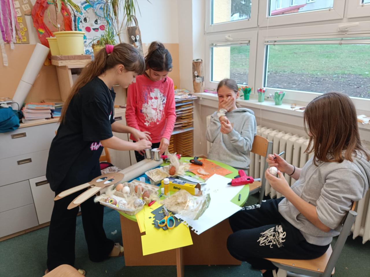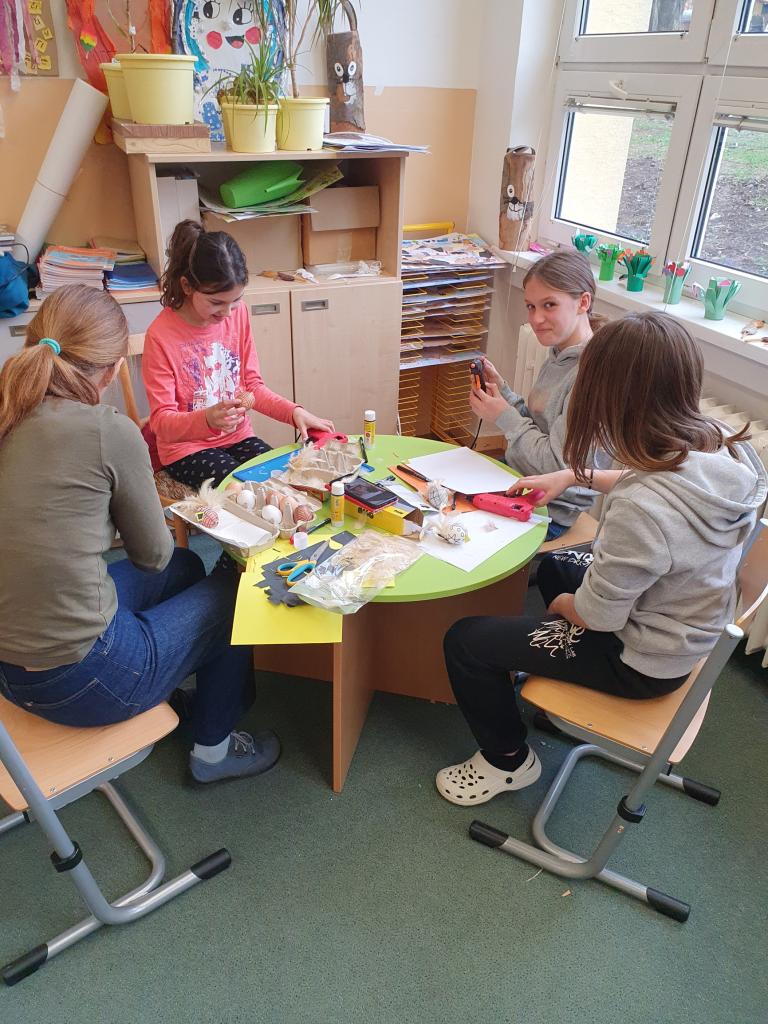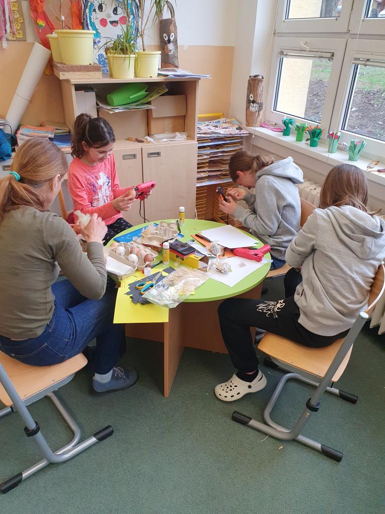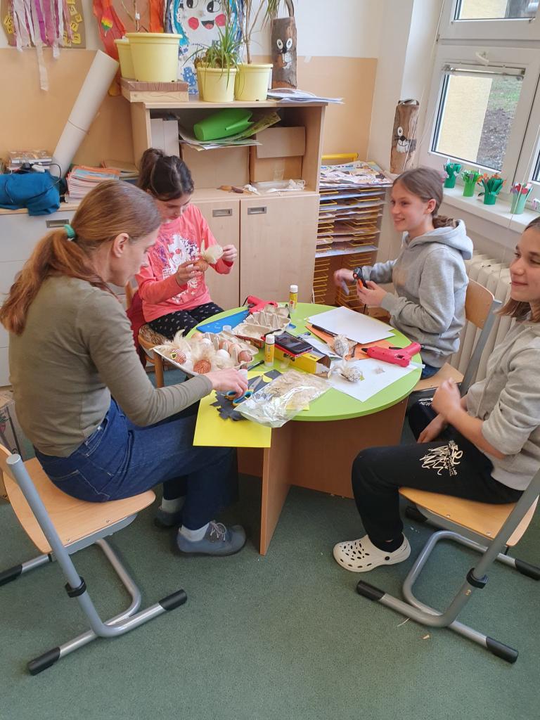 Před Velikonocemi jsme v malém workshopu vyráběli drobné ozdoby pro velikonoční výstavu.