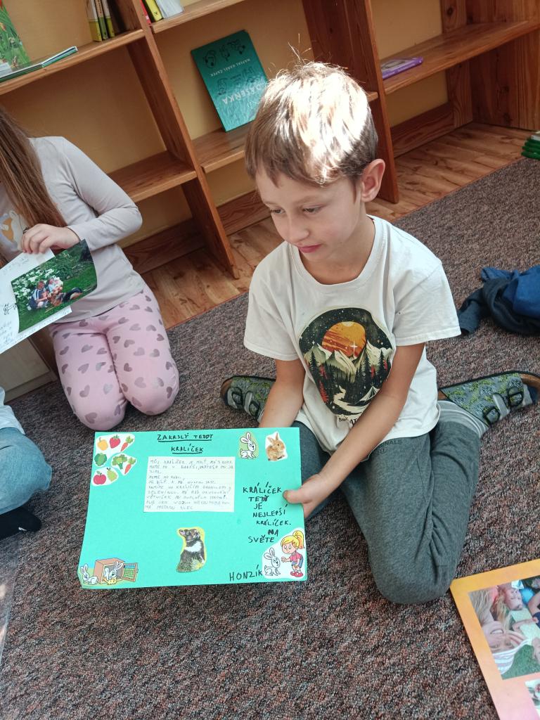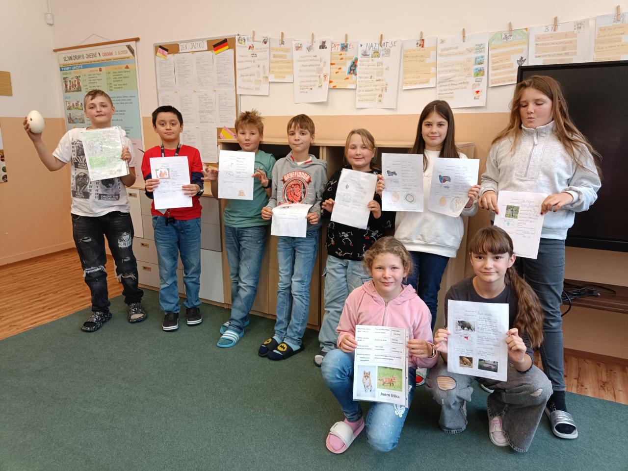 Mladší spolužáci (3. ročník) povídali o svém oblíbeném domácím mazlíčkovi, starší (5. ročník) představovali ostatním spolužákům své oblíbené zvíře z volné přírody. Dětem se Den zvířat moc líbil.
